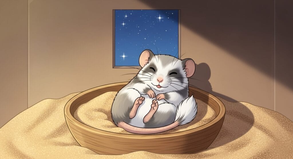 ヤマネの砂浴びシーンは、飼い主だけが見れる「癒やしの特等席」! 夜行性だから、夜に電気が消えた後や、薄暗い夕方によく見られるよ。