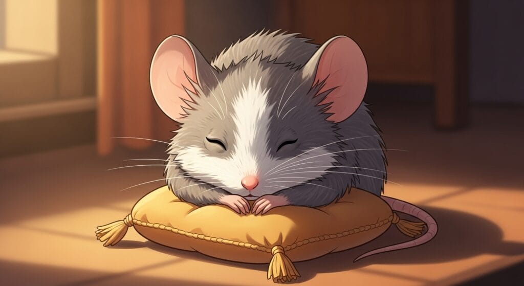 1年くらい経ってくると、ハツカネズミにも少しずつ変化が出てくるよ。昨日まで元気に走り回っていたのに、最近は寝てばかりだな……なんて感じたら、それは年をとってきた証拠かも。