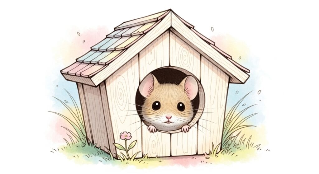 やっぱりおすすめは「木製」のハウス。木は湿気を吸ってくれるし、夏は涼しくて冬は暖かいから、一年中快適なんだ。あと、ハツカネズミは何かをかじるのが大好き。木製なら、かじっても安心だし、歯の伸びすぎ防止にもなって一石二鳥だよ。