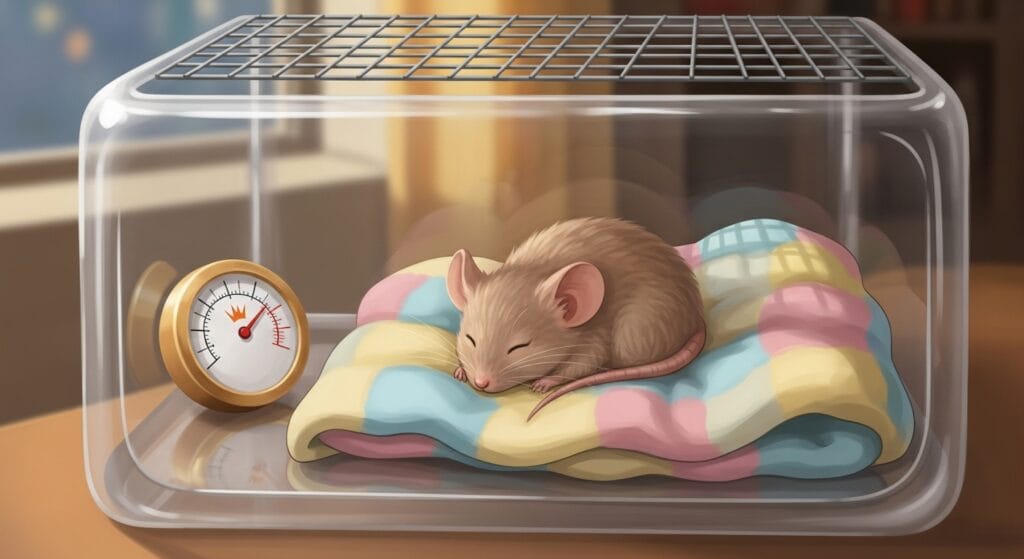 目安としては、だいたい20度から26度くらいを保ってあげると、ハツカネズミくんもリラックスして過ごせるよ。
