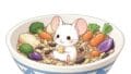 一番のおすすめは、ペットショップに売っているハツカネズミ専用の「ペレット(固形フード)」。これには必要な栄養が全部詰まっているから、これを主食にするのが一番安心。ハムスター用でもいいけど、ハツカネズミはもっと小さいから、小粒のタイプを選んであげると食べやすいよ。