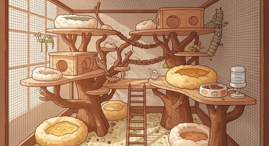 シマリスは上下に動くのが大好き!だから、横に広いケージ(カゴ)よりも、高さがあるケージを選んであげると、シマリスも「ひゃっほー!」って喜んでくれるよ。