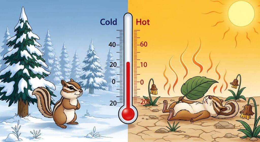 シマリスの生息地を語る上で外せないのが「気温」の話。彼らが住んでいる場所は、意外と温度の変化が激しいんだ。