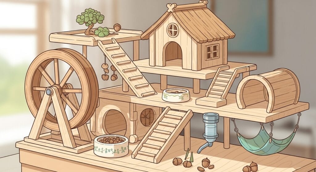 シマリスを迎える前に、まずは快適なお部屋を準備してあげよう。シマリスは上下の動きが得意だから、横に広いだけじゃなくて「高さ」があるケージが理想的だよ。
