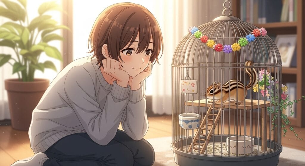 シマリスが鳴いているとき、僕たち飼い主はどうするのが正解なのかな?無理に泣き止ませようとするのは、シマリスにとってストレスになっちゃうんだ。