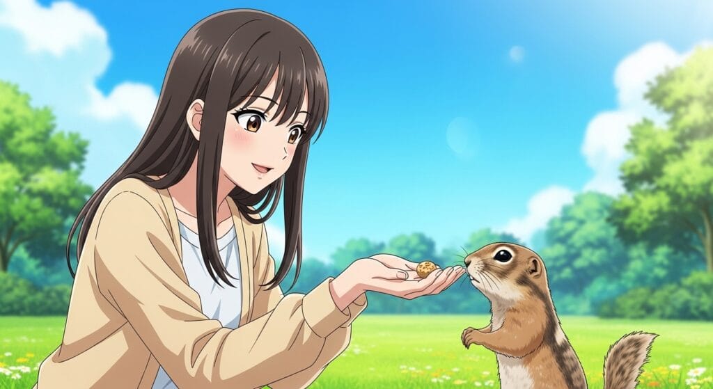 少し慣れてきたら、手からおやつをあげてみて。ジリスの大好物(種子や乾燥野菜など)を手のひらに乗せて、じっと待つ。自分から寄ってきて食べてくれたら、大きな一歩!「この手は美味しいものをくれる魔法の手だ!」って覚えてもらうんだ。